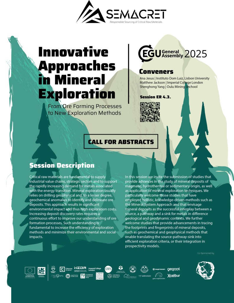 SEMACRET is promoting a session dedicated to advances in ore forming models and innovative methods in mineral exploration in EGU25 with the sponsorship of SGA. Submit your abstract until 15 January, join us at EGU25!